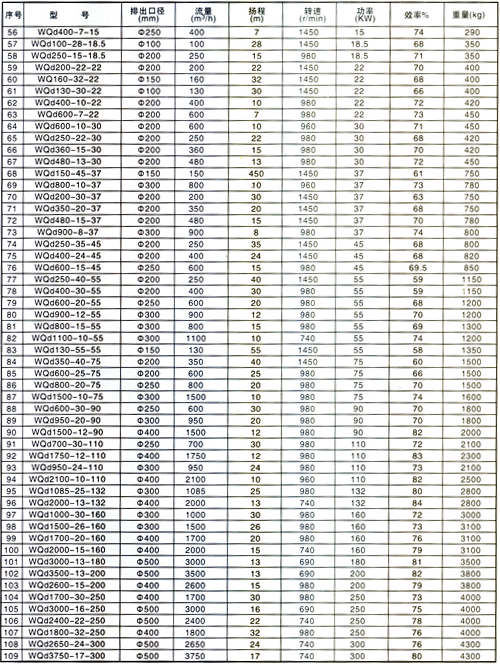 應(yīng)用:輸送溫度≤50℃,PH=4~10,固體顆粒直徑為15~110mm,廣泛用于市政工程建筑工程、廠礦企業(yè)排污及醫(yī)院、賓館、住宅區(qū)的污水排放。