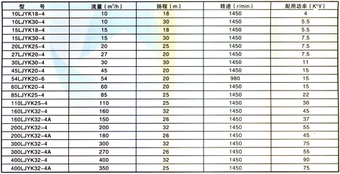 性能范圍 流量Q=10~400 m3/h 揚(yáng)程H=50m。
